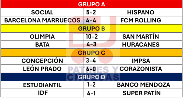 Listados. En tanto, IDF venció 4-1 a Super Patín, con los tantos de Marco Durán (2), Thomas Paredes y Franco Martínez.