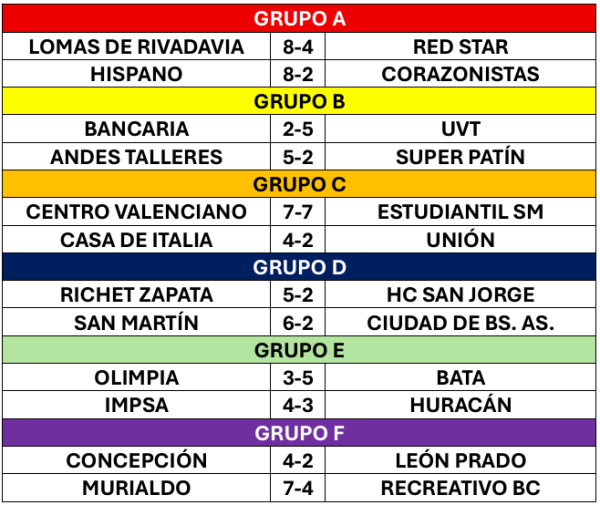Maculinos. Red Star no pudo con Lomas de Rivadavia, cayendo por 8-4. El cuadro maculino inició con Matías Vega; Gianpiero Schiaffino, Andrés Romero (1 gol); Agustín Silva (1) y Valentino Gómez (1), sumando a Lautaro Saavedra (1), Joaquín Romero, José Tomás Silva, Agustín Troncoso y Brian Galante (AS).