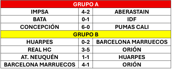 Catalanas. En doble turno, Barcelona Marruecos comenzó su derrotero en la competencia femenina juvenil. En su primer cotejo, venció 2-0 a Huarpes con anotaciones de Aylín Cerda y Agustina Kong. Posteriormente, en la jornada vespertina superó a las colombianas de Orión por 4-1 con tantos de Martina Uribe (2), Aylín Cerda y Maite Plaza.