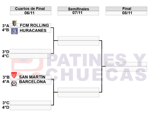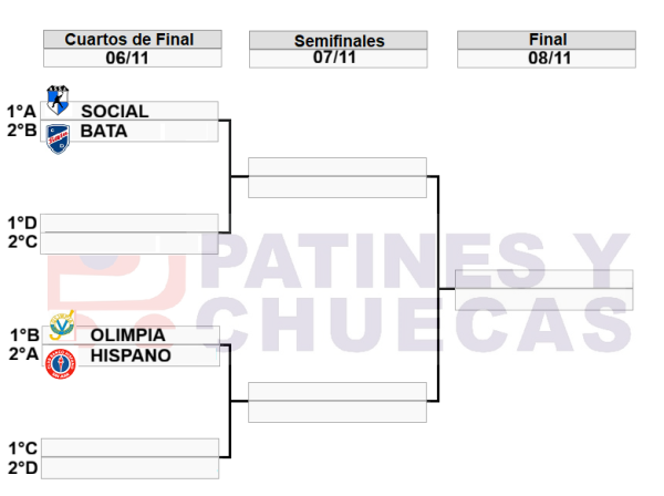 Llaves. En consecuencia, se formaron las dos primeras llaves de Cuartos de Final. A saber, Social vs. Bata y Olimpia vs. Hispano. También, ya hay dos binomios por la Copa de Plata: FCM Rolling vs. Huracanes y San Martín vs. Barcelona Marruecos.