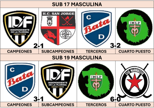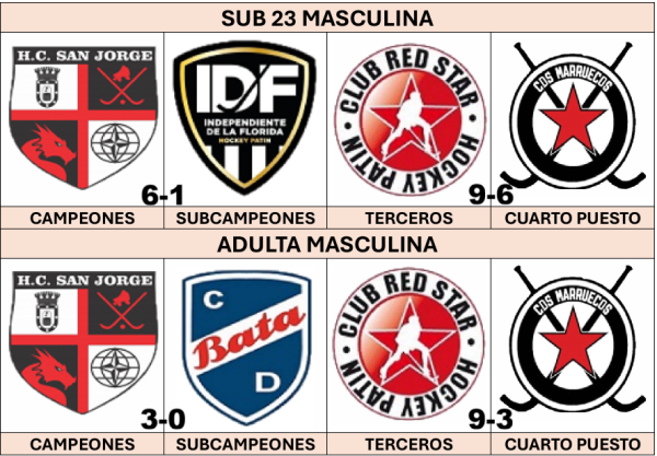 En el estamento de los varones, el predominio fue para HC San Jorge que se llevó cuatro de las seis categorías, sumando un subcampeonato para reafirmar su predominio en esta temporada. IDF anotó un triunfo y dos subcampeonatos, mientras que Bata accedió a cuatro finales alcanzando un trofeo.