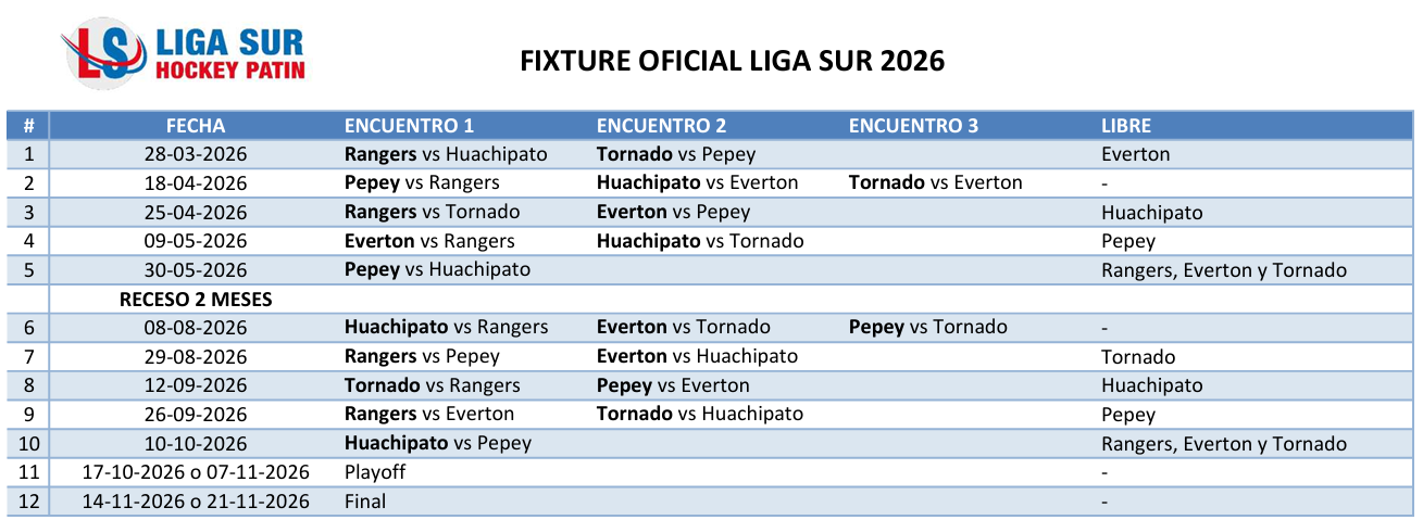 Fixture. La programación de esta quinta temporada de Liga Sur es la siguiente:
